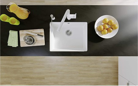 Одна основная чаша размером 500×400 мм и глубиной 190 мм предлагает оптимальный баланс объема и компактности: она вмещает крупные предметы и при этом не загромождает кухню. Конфигурация упрощает организацию пространства под моечной зоной и позволяет рационально разместить систему организации хранения или отсек для мусорного ведра. Наличие клапана-автомата InFino облегчает слив и делает эксплуатацию более комфортной за счёт удобного управления стоком без лишних движений.