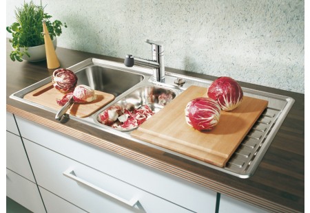 Основная чаша мойки у такой модели дополняется еще одной, меньшей по размеру. Она позволяет расширить функционал и одновременно делать сразу несколько дел. Поскольку габариты второй чаши существенно меньше, она играет вспомогательную роль и подходит не для всех задач. Для того, чтобы в полной мере использовать функционал мойки рекомендуется применение смесителя с поворотным изливом.