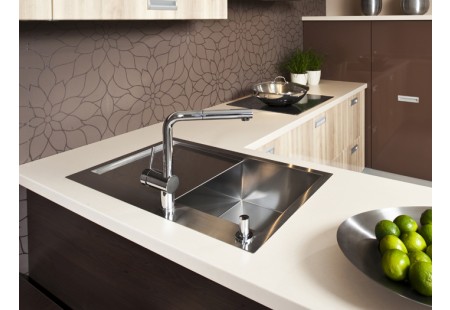 Мойка с одной чашей является классическим и самым распространенным вариантом. Она отличается универсальностью и большим количеством вариантов исполнения как по форме чаши, так и материалу, а также способам монтажа, который может быть вровень со столешницей, над или под ней.