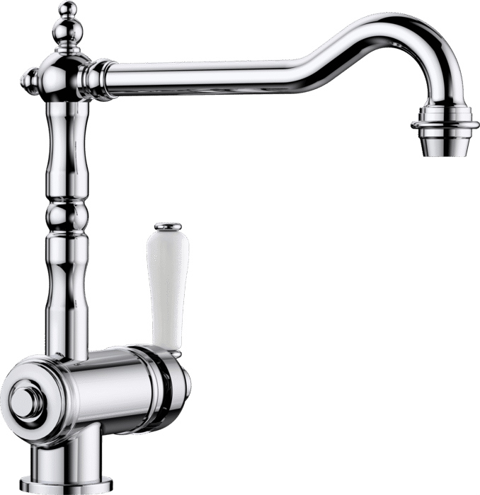 Поворотный излив позволяет поворачивать кран в удобную для пользователя сторону. Обычно угол поворота варьируется от 230 до 360 градусов. Направляется он в нужную сторону механически, т.е. рукой. Такой кран можно установить на мойку с двумя чашами. Для многих потребителей данный вариант удобнее, но за счёт подвижного механизма ломается он быстрее.