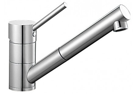 Смесители с выдвижным изливом оснащены специальным шлангом, который способен вытягиваться на значительное расстояние, позволяя использовать его как душ. Шланг может как скрываться в корпусе, так и находиться на виду. В последнем случае его чаще всего поддерживает специальная пружина, придающая ему форму и обеспечивающая устойчивость.