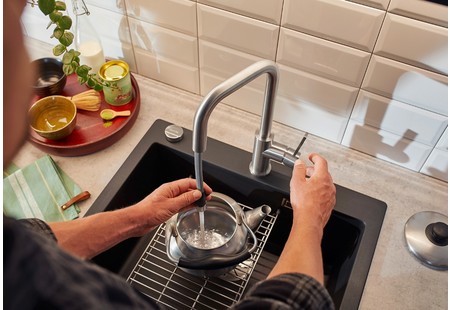 Смесители Blanco оснащены поворотным изливом, что обеспечивает удобство и гибкость в использовании. Вы можете легко направить струю воды в нужном направлении, что упрощает заполнение разных сосудов и бутылок, а также чистку раковины. Поворотный излив также делает смеситель удобным для монтажа в различных типах умывальников или моек, обеспечивая легкий доступ к воде в любой ситуации.