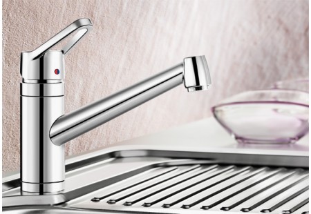 Поворотный излив позволяет поворачивать кран в удобную для пользователя сторону. Обычно угол поворота варьируется от 230 до 360 градусов. Направляется он в нужную сторону механически, т.е. рукой. Такой кран можно установить на мойку с двумя чашами. Для многих потребителей данный вариант удобнее, но за счёт подвижного механизма ломается он быстрее.
