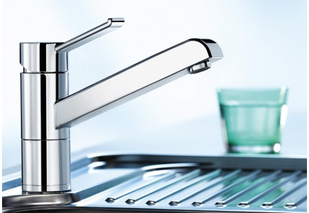 Поворотный излив позволяет поворачивать кран в удобную для пользователя сторону. Обычно угол поворота варьируется от 230 до 360 градусов. Направляется он в нужную сторону механически, т.е. рукой. Такой кран можно установить на мойку с двумя чашами. Для многих потребителей данный вариант удобнее, но за счёт подвижного механизма ломается он быстрее.