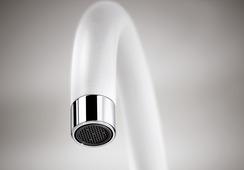 Аэратор представляет собой специальную насадку. Она, как правило, изготовлена из пластика, что делает её очень лёгкой и не позволяет подвергаться коррозии. Оно крепится к носику смесителя и снижает потребление воды без ущерба для интенсивности и напора. Аэратор разбивает поток на несколько, насыщает их кислородом, поэтому хлор, содержащийся в воде, выветривается.