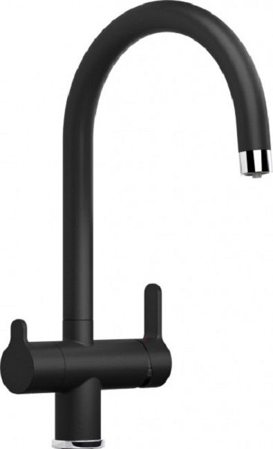Удобный двурычажный смеситель, черный корпус из латуни, поворотный излив радует каждый день. Просто.