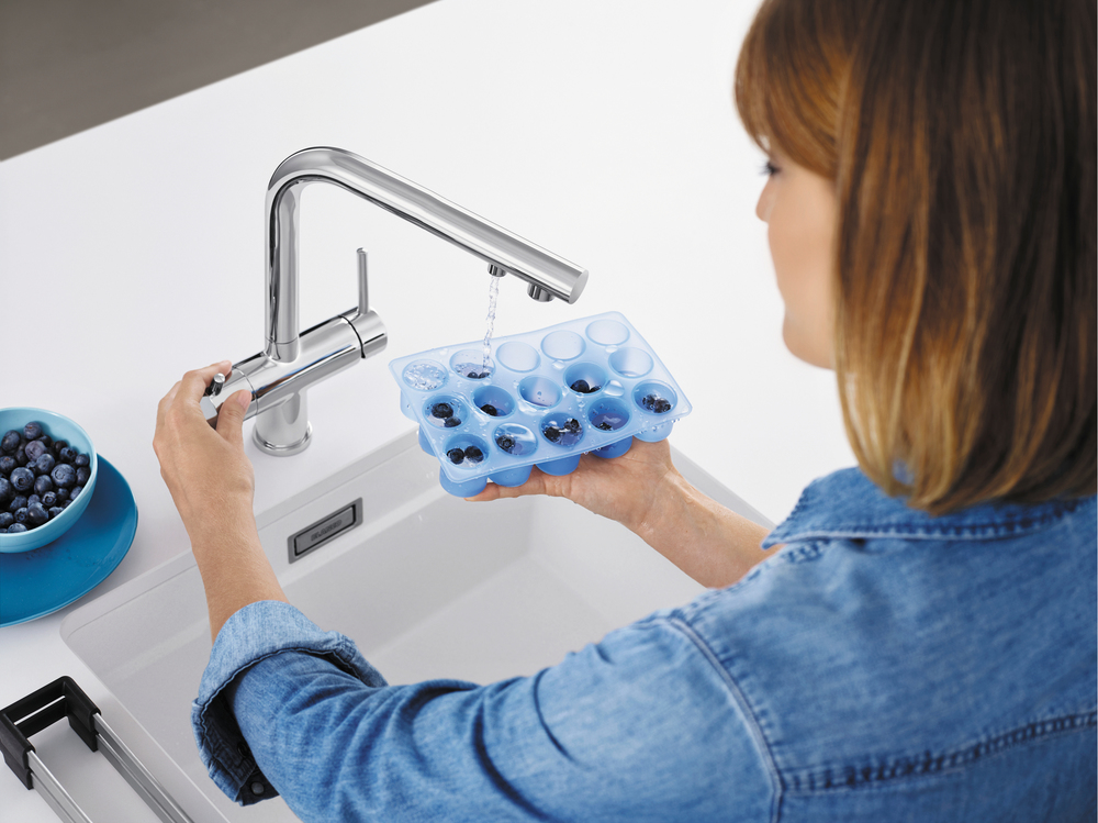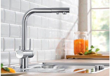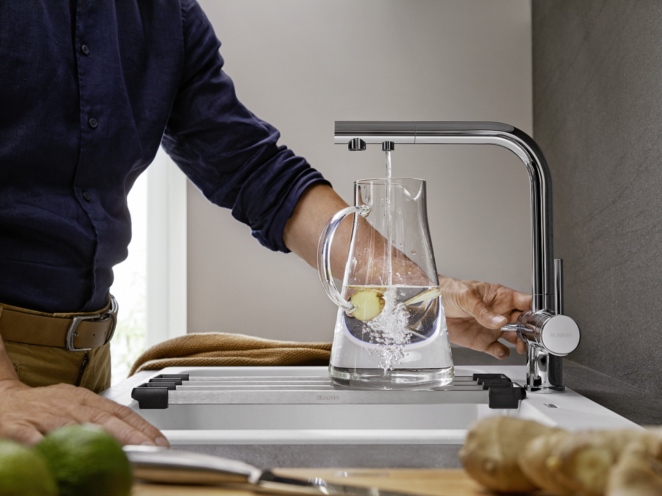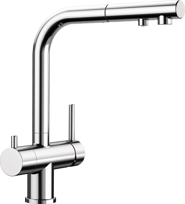 Смесители Blanco имеют раздельные каналы для водопроводной и фильтрованной воды, обеспечивая четкое разделение потока. Это позволяет выбирать и использовать воду в зависимости от потребностей, предотвращая смешивание неподходящей. Эта особенность гарантирует чистоту и сохранение качества фильтрованной воды.