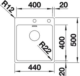 Схема встраивания 1 для мойки Blanco Andano 400-IF/A нержавеющая сталь полированная клапан-автомат InFino 522993