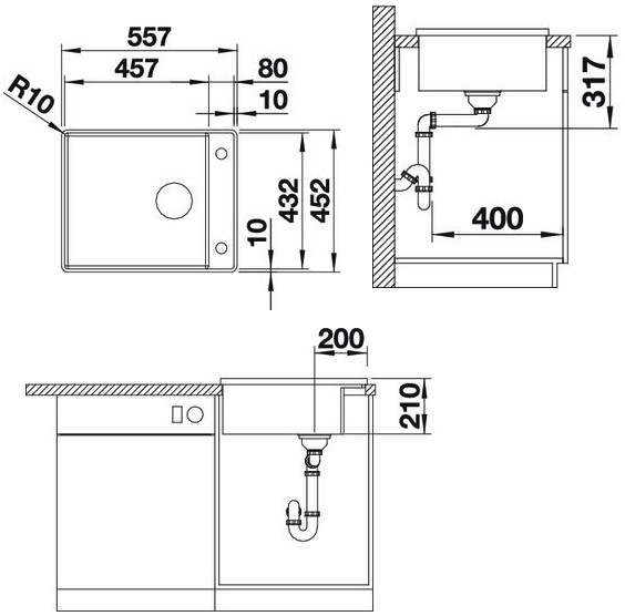 Схема встраивания для мойки Blanco Attika 60/A нержавеющая сталь полированная 521597