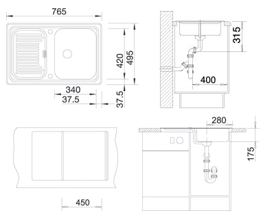 Схема встраивания для мойки Blanco Classic 45 S-F шампань 513957