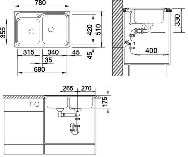 Схема встраивания для мойки Blanco Classic 8 нержавеющая сталь нержавеющая сталь полированная 507543