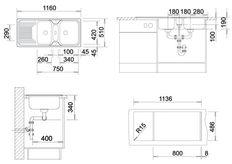 Схема встраивания для мойки Blanco Classic 8S алюметаллик 511686