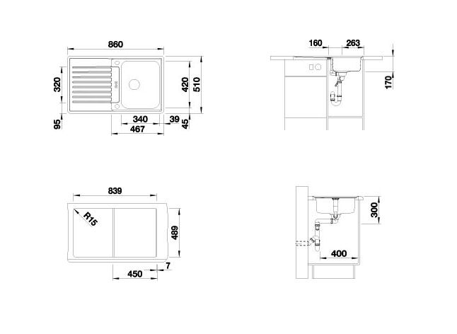 Схема встраивания для мойки Blanco Classic Pro 45 S-IF нержавеющая сталь полированная 516842