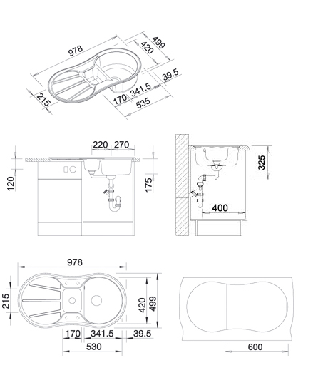 Схема встраивания для мойки Blanco Cron 6S шампань 513925