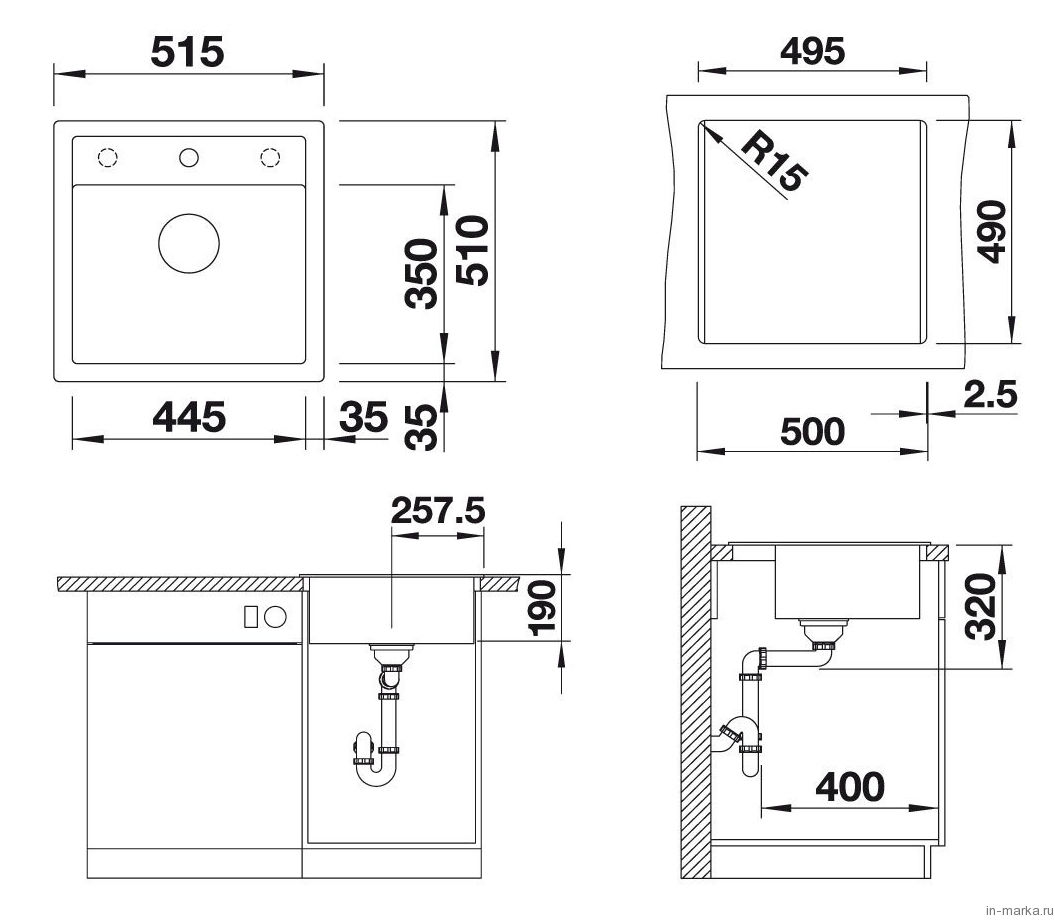 Схема встраивания 4 для мойки Blanco Dalago 5 алюметаллик 518522