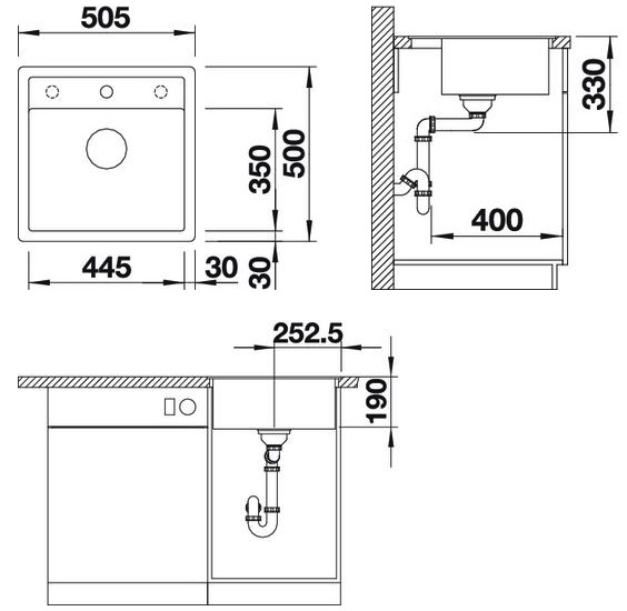 Схема встраивания 1 для мойки Blanco Dalago 5-F темная скала 518849