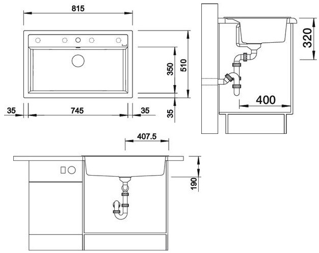 Схема встраивания для мойки Blanco Dalago 8 алюметаллик 516630