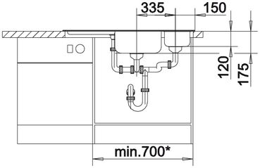 Схема встраивания 3 для мойки Blanco Delta-IF stainless steel нержавеющая сталь полированная чаша справа 514626