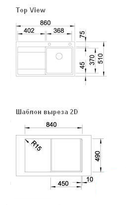 Схема встраивания для мойки Blanco Divon 45S-IF нержавеющая сталь полированная чаша справа 516089