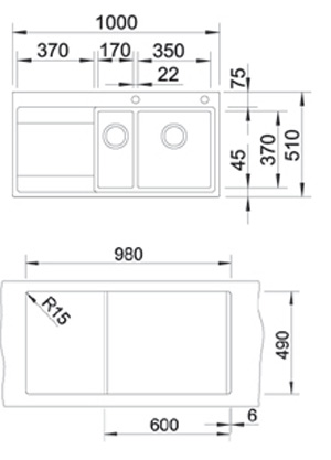Схема встраивания для мойки Blanco Divon 6S-IF нержавеющая сталь полированная чаша справа 515933