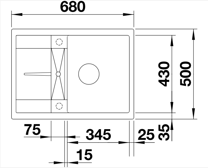 Схема встраивания 1 для мойки Blanco Metra 45S compact белый 519576