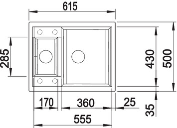 Схема встраивания 1 для мойки Blanco Metra 6 жемчужный чаша справа 520574