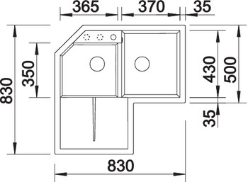 Схема встраивания 1 для мойки Blanco Metra 9 E кофе чаша справа клапан-автомат InFino 515573