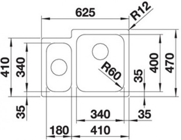 Схема встраивания 1 для мойки Blanco Supra 340/180-IF нержавеющая сталь чаша справа 523366