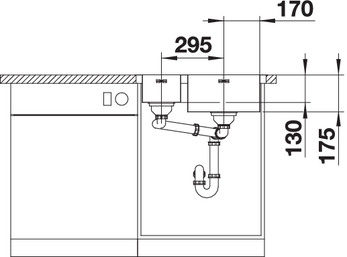 Схема встраивания 2 для мойки Blanco Supra 340/180-IF/A нержавеющая сталь чаша справа 523367