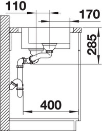 Схема встраивания 3 для мойки Blanco Supra 340/180-IF/A нержавеющая сталь чаша справа 523367