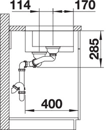 Схема встраивания 2 для мойки Blanco Supra 340/180-U нержавеющая сталь чаша справа 525214