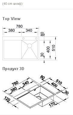 Схема встраивания для мойки Blanco Zerox 4S-IF/A нержавеющая сталь полированная чаша слева клапан-автомат InFino 521622