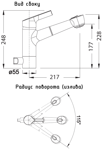 Схема встраивания для смесителя Blanco Elipso-S-A-II нержавеющая сталь 514915