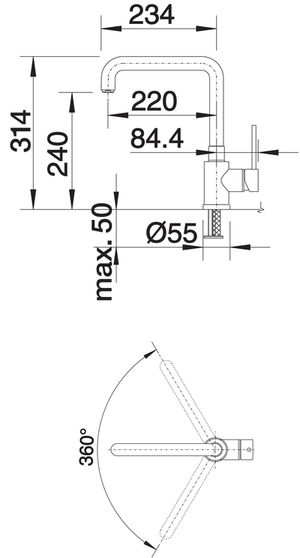 Схема встраивания для смесителя Blanco Master нержавеющая сталь 512580