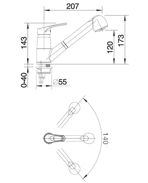 Схема встраивания для смесителя Blanco Wega-S нержавеющая сталь 512035