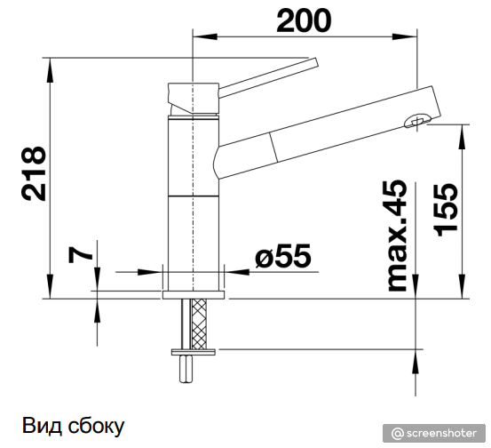 Схема встраивания 1 для смесителя Blanco Alta-S Compact нержавеющая сталь 517182