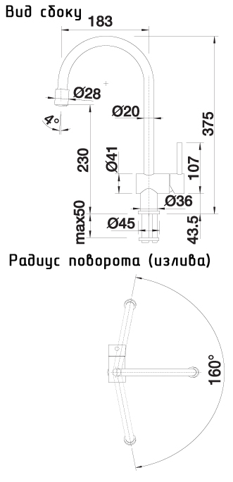 Схема встраивания для смесителя Blanco Filo-S нержавеющая сталь 512405