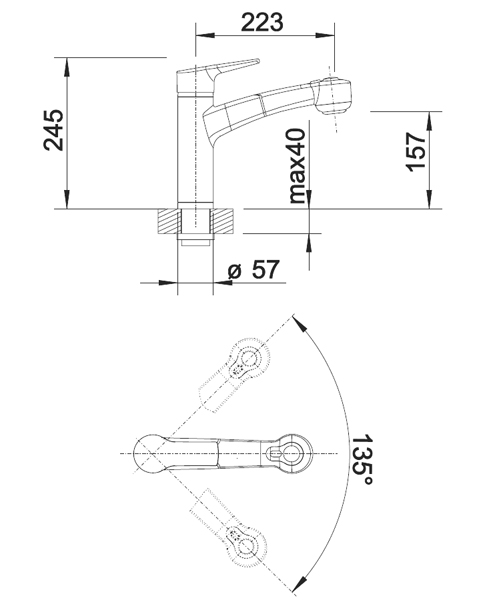 Схема встраивания для смесителя Blanco MERKUR-S нержавеющая сталь 513711