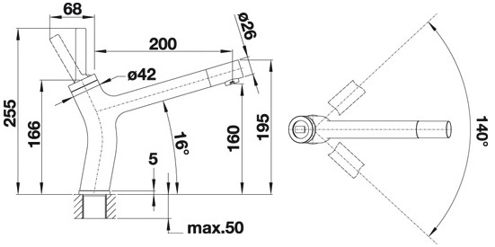 Схема встраивания для смесителя Blanco Lian нержавеющая сталь 519060