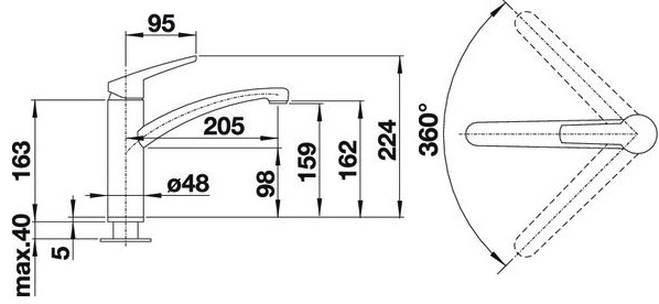 Схема встраивания для смесителя Blanco Nea нержавеющая сталь 519402