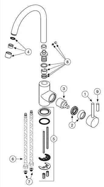 Схема встраивания 4 для смесителя Blanco MIDA Silgranit жасмин 524205
