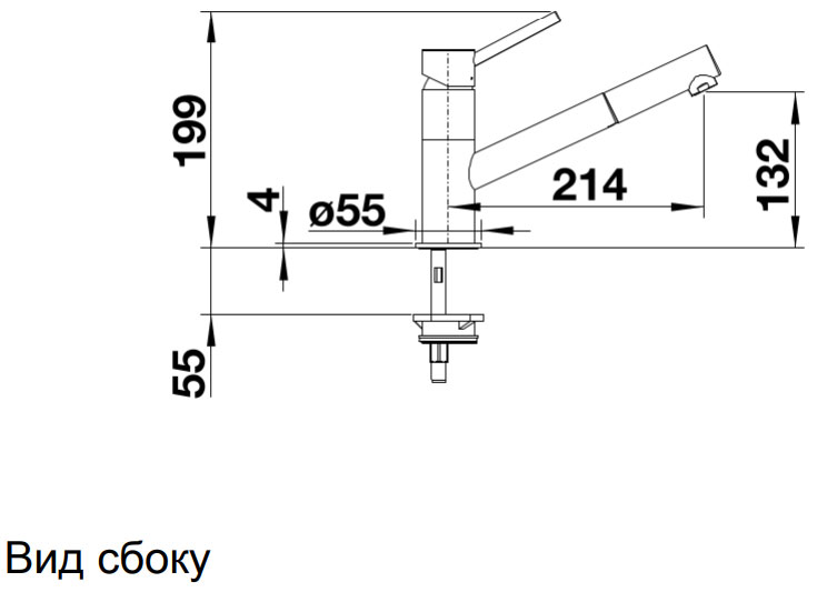 Схема встраивания 1 для смесителя Blanco KANO-S SILGRANIT темная скала 525044