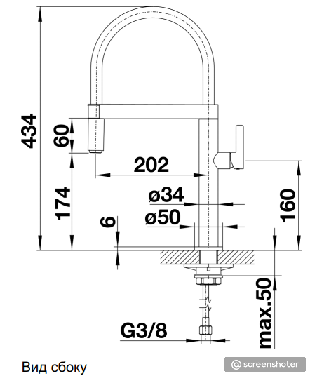 Схема встраивания 1 для смесителя Blanco Culina-S Mini хром 519843