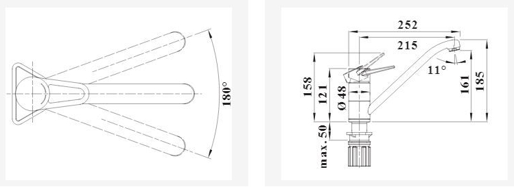 Схема встраивания для смесителя Blanco Wega II Silgranit жасмин 526409