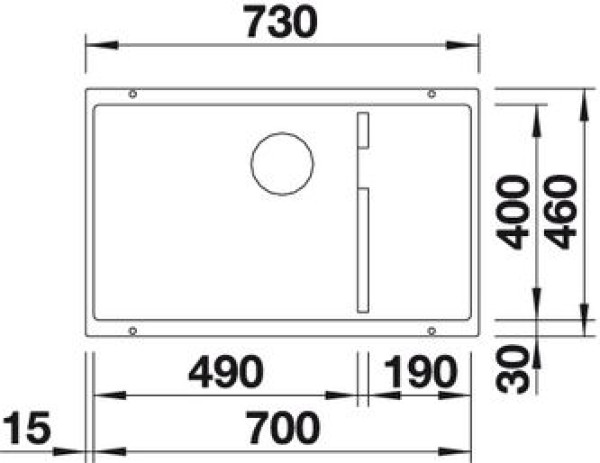 Схема встраивания 1 для мойки Blanco SUBLINE 700-U Level SILGRANIT антрацит чаша слева клапан-автомат InFino 523538