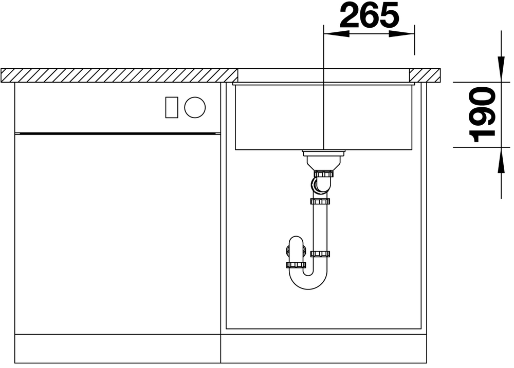 Схема встраивания 2 для мойки BLANCO SUBLINE 500-U Silgranit мягкий белый клапан-автомат InFino 527170